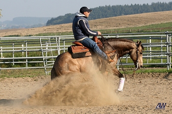 __________________________________________________________________ Nachlese II.: Wochenendkurs mit Alex Koller 07. / 08. Juli 2007 Zwar hat es lange gedauert, aber an jenem Wochenende im Juli 07 war es endlich wieder soweit. Galt es doch, dem in diesem Sommer doch sehr ungnädigen Wettergott ein Schnippchen zu schlagen und sich ein weiteres Mal in den Ring zu begeben, um sich den fachmännischen - und kritischen - Augen unseres Trainers zu stellen. [mehr] __________________________________________________________________ Nachlese Western Clinic mit Alex Koller 13. / 14. Mai 2006 Als Neuerung bei diesem Clinic wurde der Kurs-Sonntag videotechnisch von der RHV Produktion begleitet. So konnten die Teilnehmer erstmals einen Kurstag auch als DVD mit nach Hause nehmen. Kursbericht & Impressionen zum Clinic mit Alex Koller [hier] Weitere Infos unter: |